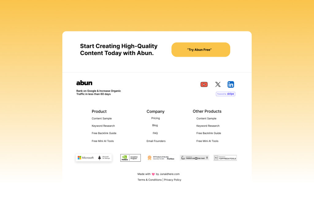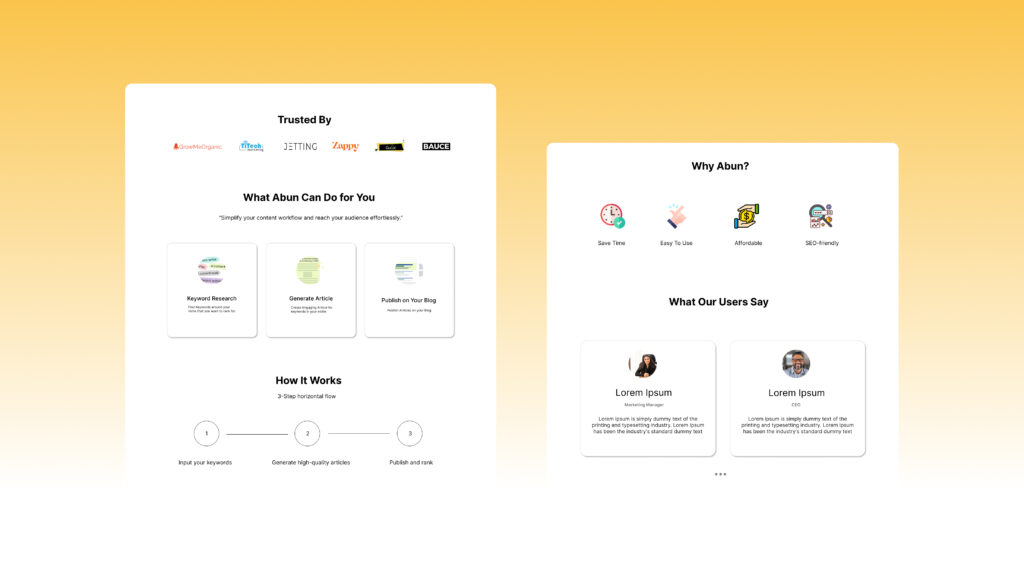 The outcome of the Abun AI Tool Landing Page Design Concept was a sleek, modern, and intuitive interface that communicates the essence of innovation and simplicity. A clean layout combined with purposeful visuals creates a professional yet approachable atmosphere, while the clear structure ensures users can easily understand the tool’s value and navigate without confusion. The final design effectively merges advanced technology with user-centered design, delivering an engaging experience that reflects the power and accessibility of AI