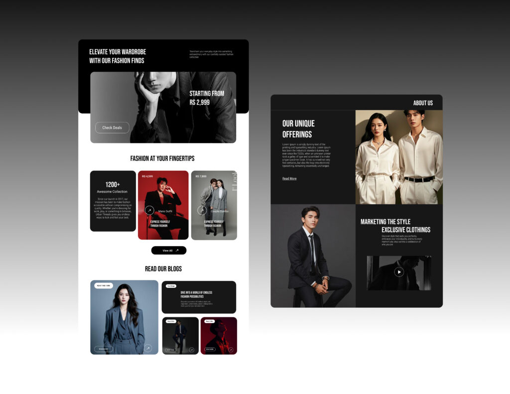 This project focuses on creating a modern, visually appealing landing page for a clothing brand. The goal was to design a seamless user experience that highlights the brand’s unique style, latest collections, and promotions while encouraging user engagement and conversions. The design balances bold visuals with clean typography, ensuring the products remain the star of the page. From hero banners to product showcases, every section was carefully structured to guide visitors through the story of the brand, making browsing effortless and enjoyable