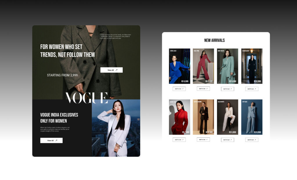 The concept for this landing page revolves around presenting fashion in a sleek, contemporary way that resonates with the target audience. Using a combination of vibrant imagery, consistent branding, and intuitive navigation, the design emphasizes both style and usability. Key elements like product highlights, promotional banners, and call-to-action buttons were designed to drive engagement, while maintaining a cohesive and visually striking aesthetic. The ultimate aim of the project was to create a landing page that not only looks stylish but also converts visitors into customers, reflecting the brand’s identity and fashion-forward vision.