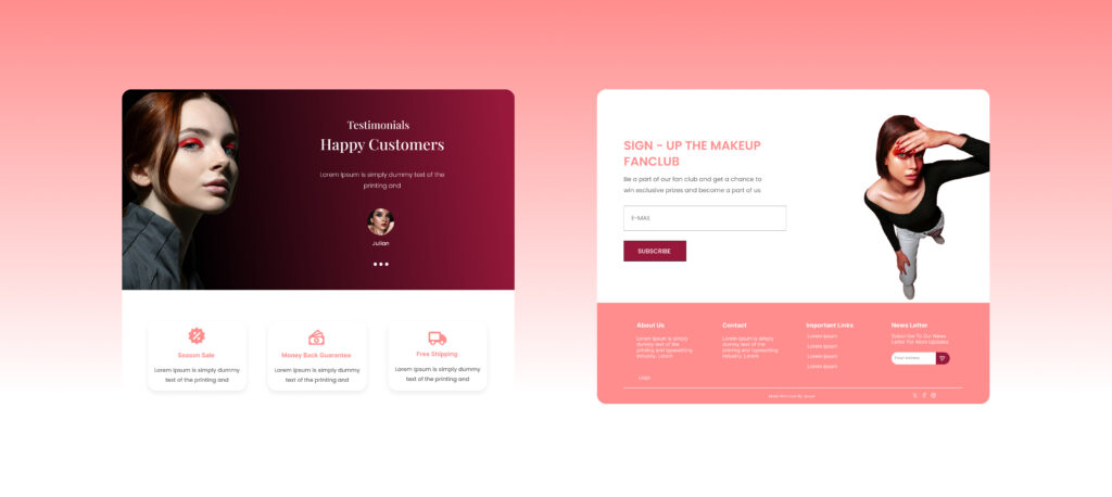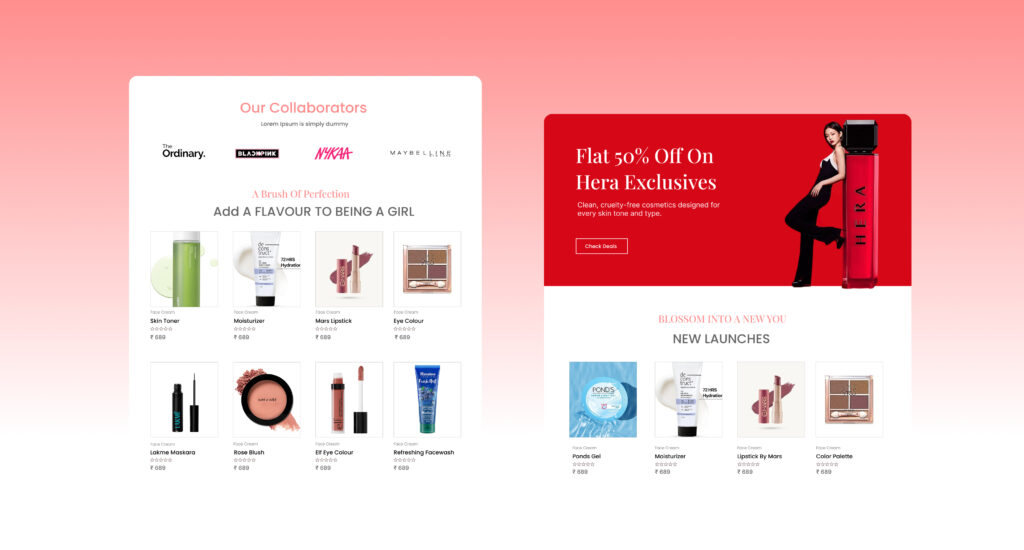 The Cosmetics Landing Page Design Concept is built to capture beauty, elegance, and sophistication. With a refined color palette, clean layouts, and striking visuals, the design highlights the allure of modern cosmetics. The aim is to merge luxury with simplicity, offering users an immersive and effortless browsing experience that feels both empowering and aspirational